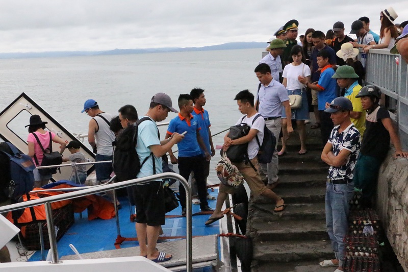 6h sáng, ngày 18/7, khoảng 3.500 khách du lịch lưu trú lại đảo Cô Tô đã lên tàu trở về đất liền sau 2 ngày phải ở lại đảo do ảnh hưởng của cơn bão số 2.